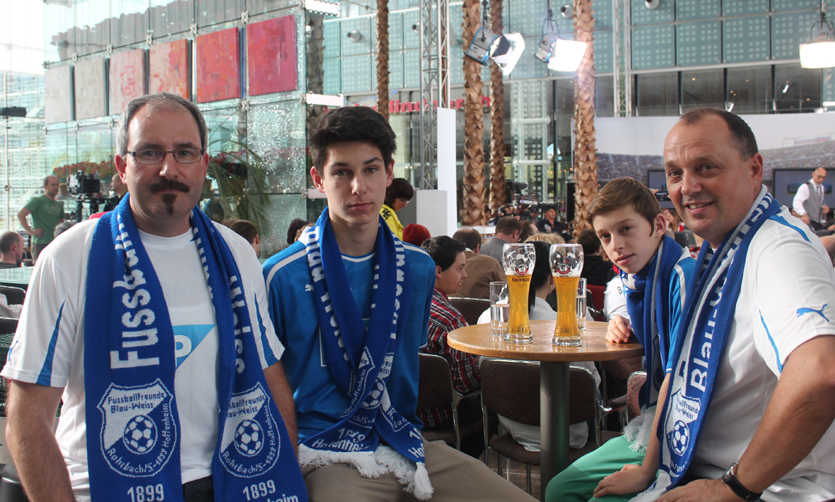 Zusammen mit dem „Integrativen 1899-Fanclub“ aus Weinheim waren Vertreter unseres Fanclubs als Zuschauer zu Gast beim „Volkswagen Doppelpass“ von Sport 1 im Kempinski-Hotel im Airport München.