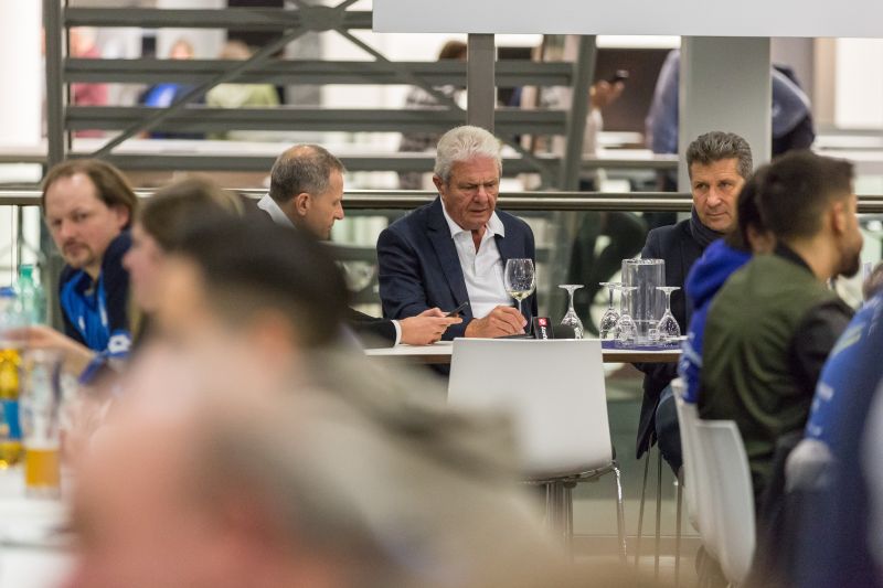 „Wie immer habe ich mir vorher darauf gefreut den Spielern ganz nah zu kommen und ungezwungen mit ihnen zu sprechen. Spannend war, welcher Spieler diesmal zu uns an den Tisch kam. Vorher wurde nämlich ausgelost, welcher Spieler bei welchem Fanclub sitzt. Ich durfte am Tisch der Fahnenschwenker Platz nehmen. Dort waren Co-Trainer Alfred Schroeder, Dennis Geiger, Adam Szalai, Sebastian Rudy und Mark Uth. Neben dem letztgenannte nahm ich Platz und konnte so fast eineinhalb Stunden ungestört mit dem gebürtigen Kölner plaudern.